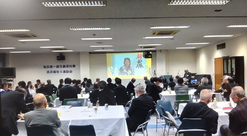 塩田康一 鹿児島県知事が第48回関東鹿児島県人会連合会総会(渋谷・セルリアンタワー東急ホテルにて620名参加)に県下の市町村長とともに参加され写真、動画の通りに会場は盛り上がりました。特に知事の踊り、舞台での奄美の歌の熱唱には感動しました。