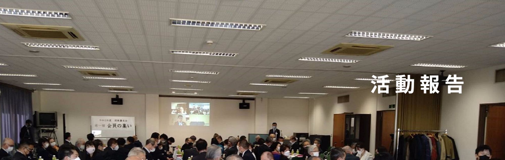 第1部は開会の辞が重信副会長から始まり、続いて黒木会長挨拶がありました。報告事項は植村事務局長から役員紹介の後、「関東康友会」紹介映像に続いて、令和3年度活動報告、活動収支報告、令和4年度活動予定、活動予算が説明されました。この後に皆様ご期待の塩田康一知事からご挨拶がありました。