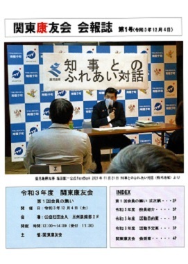第1部は開会の辞が重信副会長から始まり、「関東康友会」紹介映像(90秒)に続いて黒木会長挨拶がありました。報告承認事項は植村事務局長から役員紹介の後、会則案の報告と承認、令和3年度活動目的案並びに活動予定案が説明され、全て承認されました。この設立総会の後に皆様ご期待の塩田康一知事からご挨拶があり喜ばれました。