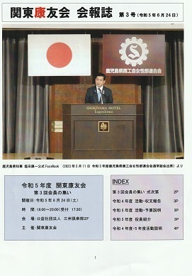 第1部は開会の辞が重信副会長から始まり、続いて黒木会長挨拶がありました。報告事項は植村事務局長から「関東康友会」紹介映像に続いて、令和4年度活動報告、活動収支報告予定、令和5年度活動予定、同活動予算が説明されました。そして皆様ご期待の塩田康一知事からご挨拶がありました。