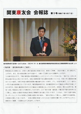 第1部は開会の辞が重信副会長から始まり、昨年秋の黒木会長逝去を偲び黙とうを捧げ、続いて尾曲会長挨拶がありました。その後、植村事務局長から「関東康友会」紹介映像に続いて、令和6年度活動報告、並びに収支報告、次に令和7年活動予定並びに活動予算、新役員の紹介があり、そして皆様が楽しみにしていた塩田康一知事から県政報告がありました。